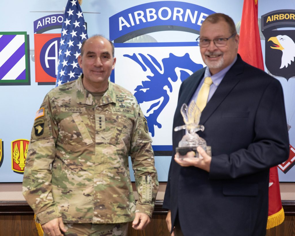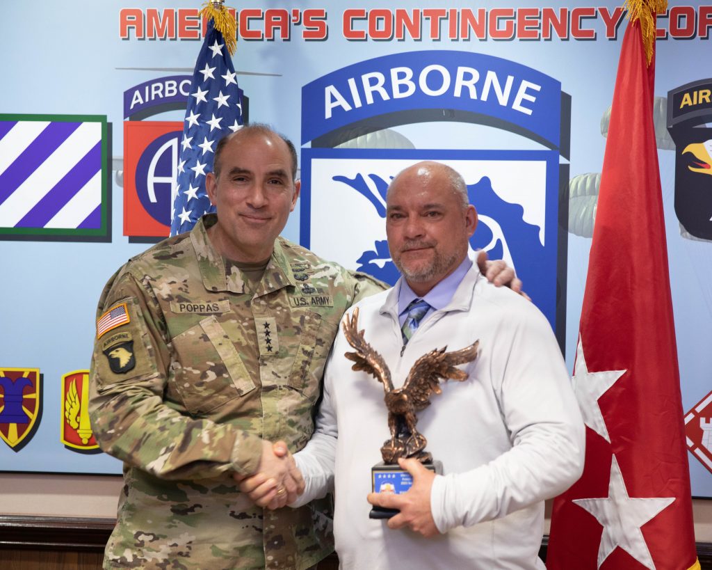 Annually, FORSCOM G1 accepts and boards Unit and Individual Safety Award Nominations with an objective panel consisting of Safety Directors and Program Managers throughout the Command to select winners of the Army Exceptional Organization Safety Award (AEOSA / 0-5 through 0-9 Level Commands) and the Army Individual Award for Excellence in Safety (AIAES) by category. FY22 nominees competed against peer organizations and represent the most outstanding of FORSCOM organizations and individuals in Safety.Gen. Andrew P. Poppas, Forscom Commander, presents safety awards to