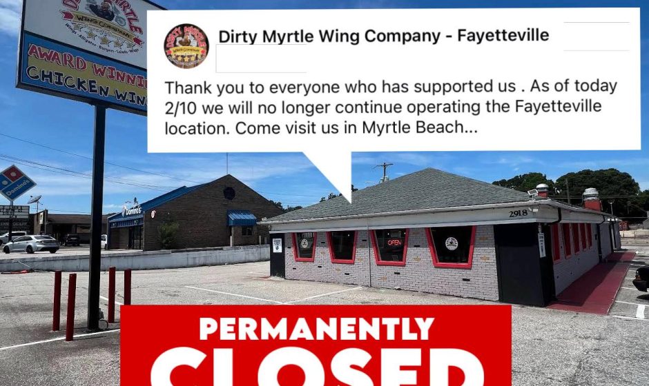 FAYETTEVILLE NC — Dirty Myrtle Wing Company has officially announced the permanent closure of its Fayetteville NC location.